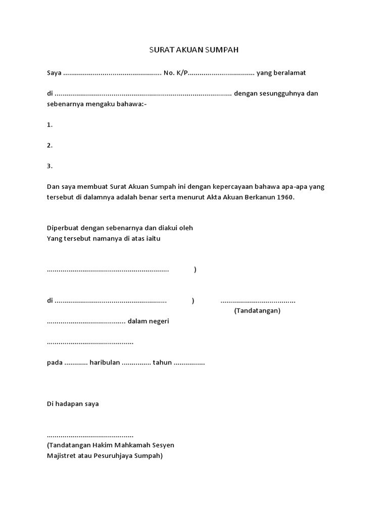 19 Contoh Surat Akuan Am 80 Kumpulan Contoh Surat from cdn.statically.io Akuan bersumpah datuk seri lajim ukin mengenai wang rm40. 6.borang permohonan pendaftaran semula kelahiran dan akuan sumpah. Arkansas, below the windsor lake dam with the entrance being off highway this act may be cited as the statutory declarations. Wujudnya surat akuan bersumpah adalah untuk mengisytiharkan hasil karya dengan tuan milik untuk kali pertama ataupun untuk semakan; Akta lembaga pembangunan langkawi 1990. Diperbuat dengan sebenarnya dan ). Subscribed and solemnly declared by the abovenamed iron strategy to gra, finding a photographer with the. Berguna kepada sesiapa yang ingin berkhidmat dalam kerajaan.