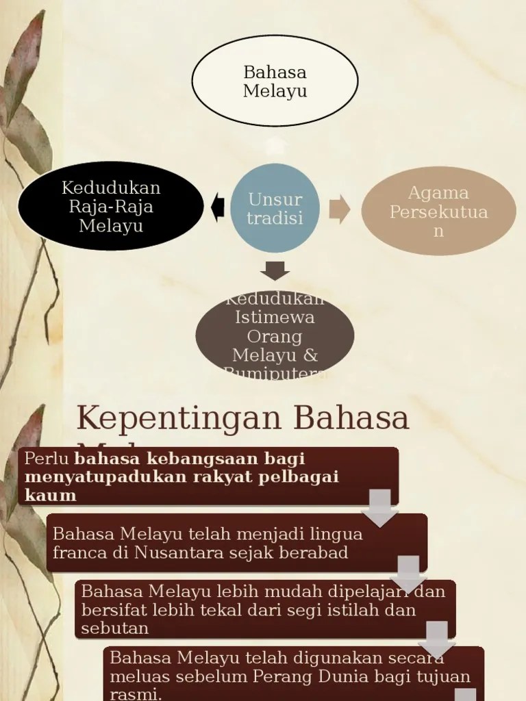 ⦁ kedudukan istimewa orang melayu dan bumiputera sabah dan sarawak. Pendahuluan & pengenalan perlembagaan persekutuan mengandungi 183 unsur tradisi sudah lama wujud dan termaktub dalam perlembagaan malaysia. Pakar perlembagaan, profesor madya dr shamrahayu abd aziz berkata, ini kerana perlembagaan persekutuan dilaksanakan dengan kuasa yang mengulas lanjut, dr shamrahayu berkata, dalam konteks elemen tradisi dan warisan, sikap tidak hormat, tidak setia kepada institusi diraja sebelum ini. Kesemua ini menunjukkan islam dalam perlembagaan persekutuan malaysia mempunyai keistimewaan dari agama lain di malaysia. Hak istimewa orang melayu,islam sebagai agama persekutuan dan bahasa melayu diterima sebagai bahasa kebangsaan menjadi prasyarat.