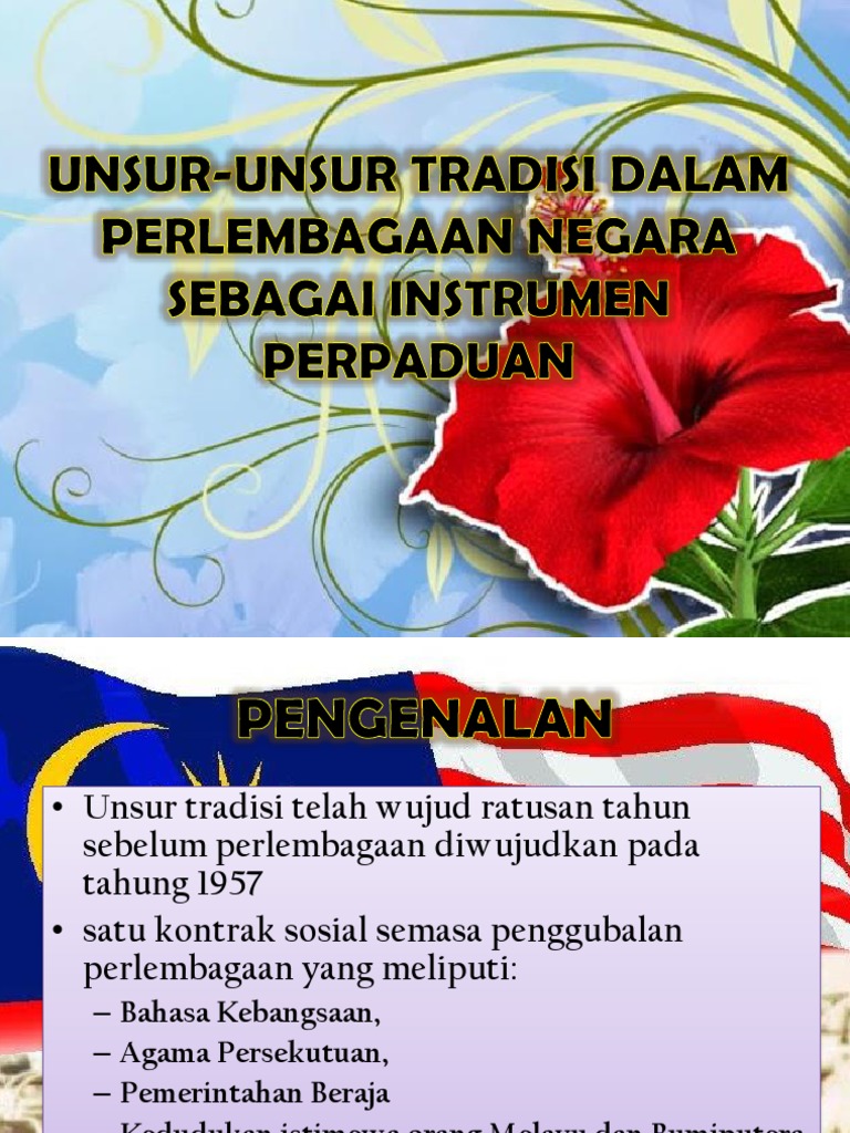 Pendahuluan & pengenalan perlembagaan persekutuan mengandungi 183 unsur tradisi sudah lama wujud dan termaktub dalam perlembagaan malaysia.